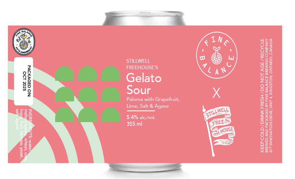 Our first Nova Scotia collaboration, Gelato Sour Paloma was brewed with Stillwell Freehouse in Halifax. Additions of grapefruit, lime, salt and agave, this Gelato Sour emulates a paloma. It's easy-drinking, refreshing, and packed with flavour: sightly tart, slightly sweet, with a touch of salt.